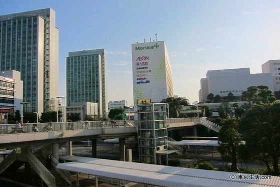 中央にショッピングセンターのMorisia、右側に習志野市民ホール。